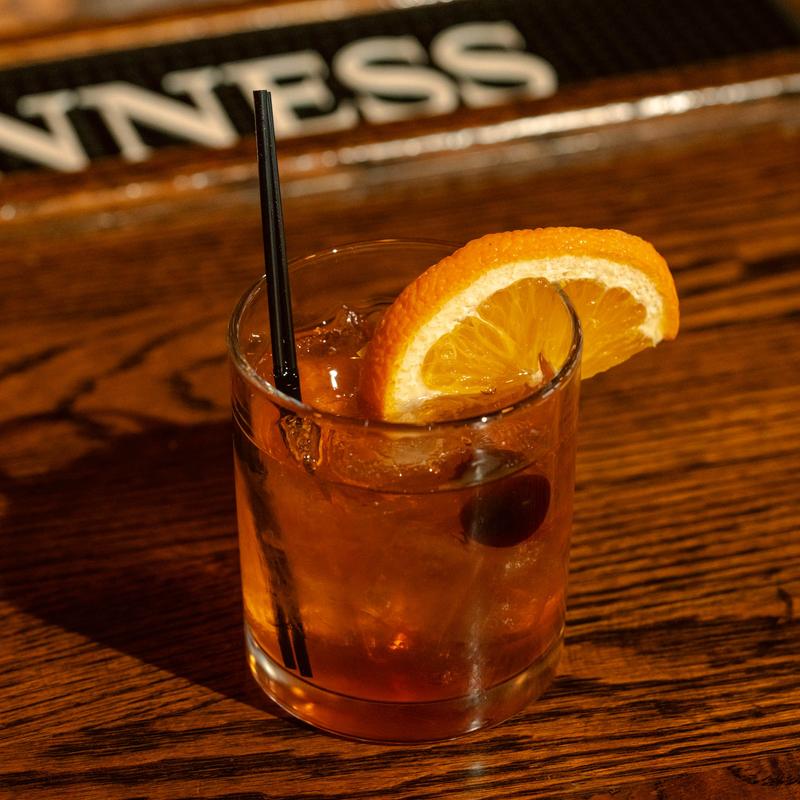 Bulleit Bourbon, filthy black cherries, simple syrup & orange slice