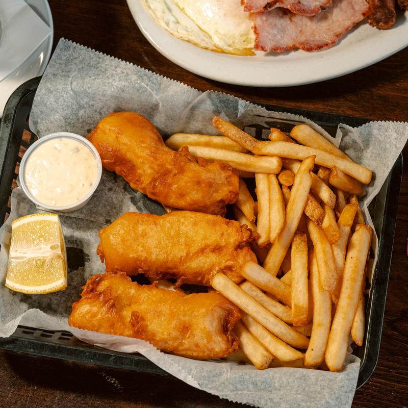 3 house-battered wild-caught cod served with fries, tartar sauce, and lemon