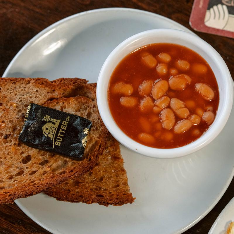 Add fries, mashed potatoes, or a side of baked beans for an additional charge